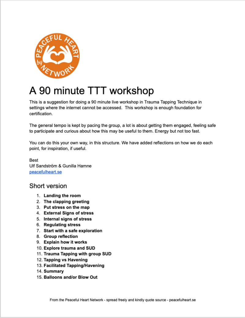 A direct link to instructions for holding a training in Emotional First Aid with Trauma Tapping and Havening.