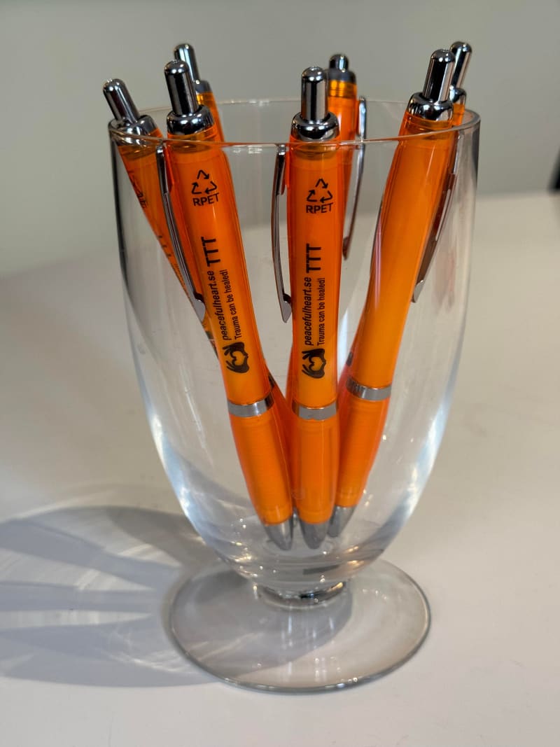 A pen for taking notes, reminding that "Trauma can be healed!"